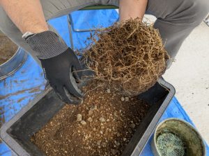 鉢の中の根っこは元気いっぱい、ぎっしり。